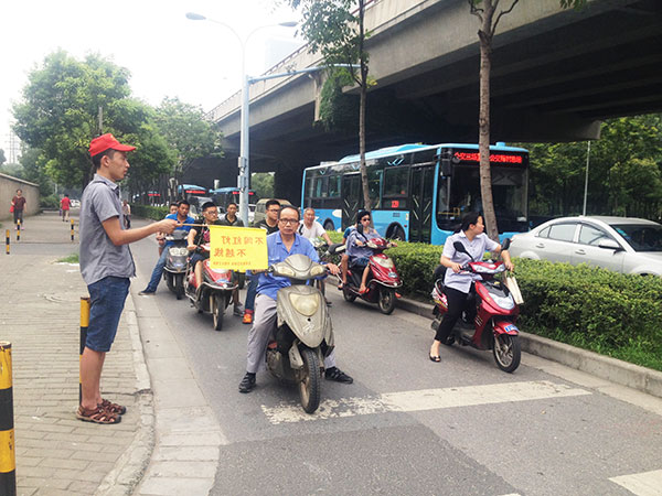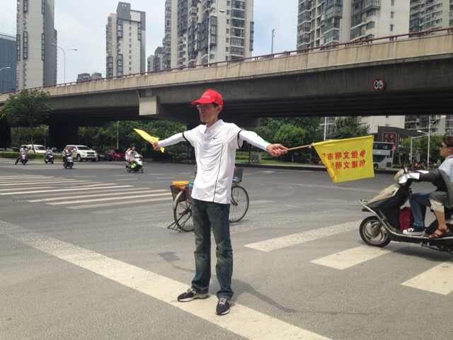 通扬路金城路口交通情况比较复杂,既是十字路口,又是金城路高架上下口交汇处,为了高标准、严要求的完成交通协勤工作,我所选派16位具有较强责任心和服务意愿的职工代表组成志愿协勤队伍,认真负责地协助交警维护交通秩序及向路人宣传交通安全知识,积极劝导不文明交通行为,宣传交通安全法律法规,向市民传播平安信息。一天5小时的协勤,志愿者们雷打不动,按时上岗,特别是下午2点-3点期间,更是挥汗如雨,加之夏日天气多变,一会儿烈日当空,一会儿大雨如柱,志愿者们仍冒雨坚守,毫无怨言。年近五旬的高师傅总是迎着太阳站,把相对阴凉点儿的位置留给女同志,站在毫无树荫的烈日下,他用非常标准的姿势维持着秩序,红灯亮时,平举小旗,阻止行人闯红灯,对强行闯红灯者进行劝导;绿灯亮时,把小旗竖举,引导行人和非机动车驾驶员有序通过马路。高师傅积极、热情的精神风貌感染了路上的行人,他们纷纷自觉配合指挥,有的还给予了口头慰问,对此高师傅感到非常欣慰,他说,“作为一名共产党员我非常乐意参加这样的活动,共建文明的交通环境是每一个市民应尽的责任和义务,作为党员更应该争做文明交通行动的倡导者、参与者和实践者,发挥先锋模范作用。”16名志愿者中党员占到了半数,他们积极投身到正在深入开展的党的群众路线教育实践活动当中,用实际行动践行党的群众路线,用自身文明规范的行动,打通为群众服务的“最后一公里”,将文明的种子播入每个人心中。