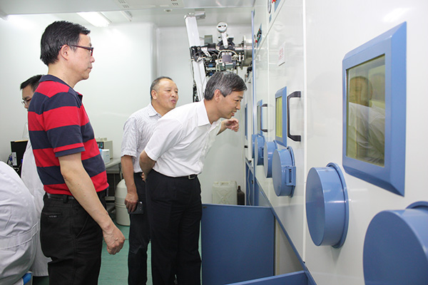 7月3日下午,中国核学会副秘书长申立新先生莅临我所,在罗世能所长和谢敏浩副所长的陪同下,参观了我所科研成果展示厅、MicroPET中心、回旋加速器中心和生物医药研发中心。罗所长和谢副所长介绍了我所建所以来在核医学科研方面开展的重点工作和单位发展情况,申秘书长对我所取得的丰硕创新成果给予高度肯定,详细了解了核医学技术和产品的研发、生产、临床应用情况,鼓励我所继续发挥核医学科研的优势,加强交流合作,促进核医学与其他学科的融合发展和互利共赢,更好地服务临床、造福群众。(文/图 办公室 魏利)