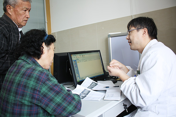 查好房后,在去往二楼外科专家门诊的电梯里,朱主任才有空告诉笔者为什么要首先看看术后患者的伤口引流管,管子里体液的量和色能直观地反映伤口内部是否发生了异常出血,及早发现、排除患者遭遇术后喉痉挛而窒息的风险。“最大的风险在术后,所以我们要管理好患者的所有状况。”话刚落音,电梯门开,一种乌泱泱的人群升腾出的喧嚣声音让人感受到二楼专家门诊区到了,眼尖的患者说“朱主任来了”。小心穿过人群,轻开诊室门,朱主任一边身体落座一边双手打开第一位患者的病历本,带着笑意,注视着患者,还是那样轻柔地问:“是怎么不舒服啊?”。得到回答后,朱主任仔细用手检查了患者的脖颈上甲状腺处,沟通了一些病情,告诉患者需要验血和做B超看看,在电脑系统里操作好后,他看着患者说“三楼缴费,三楼检查,做好再回来”。这是一位患者与医生问诊的全部,却只是朱主任这一天里100多次问诊的一个片段。绝大部分患者取到检查报告单之后还需要再次商讨病情、开具处方,“3个月(或6个月或1年)后来复查一下”、“少吃海带、紫菜和海蜇头这些含碘食物”、“空腹、一次2粒半”等等这样的叮嘱(笔者注:医嘱因人而异,上述仅作举例)和解释计不清重复了多少遍。