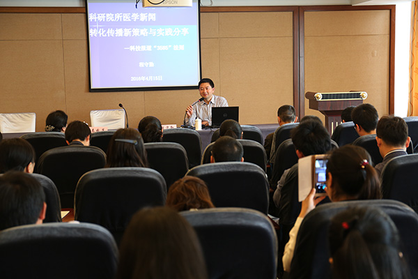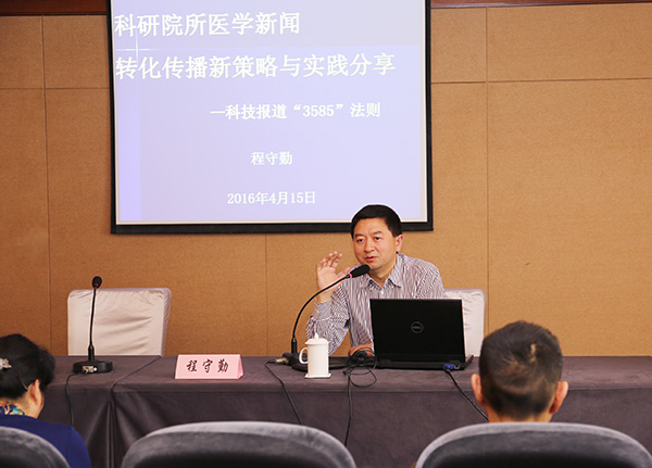 在“精准医疗”的战略背景下,如何将医学科技新闻也进行精准化宣传?4月15日下午,我所邀请《健康报》记者程守勤老师做《科研院所医学新闻转化传播新策略与实践分享》的专题讲座。我所各部门通讯员、多位业务科室负责人和兄弟单位通讯员代表共近50人参加了讲座学习。