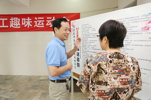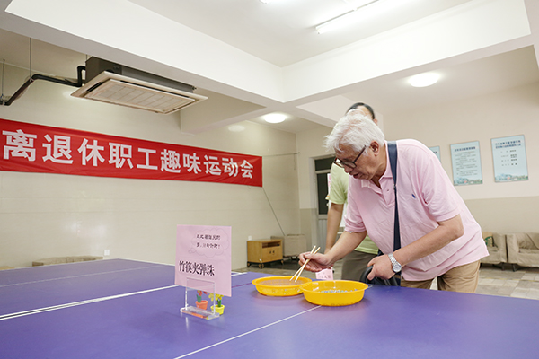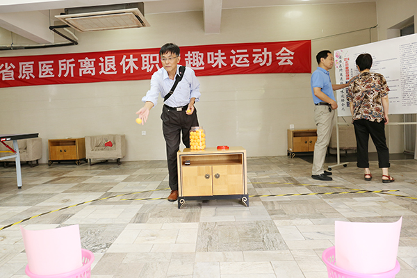 体检结束后,老同志们来到离退休职工活动室,兴致勃勃地参加离退休职工趣味运动会。本着适宜老年人身心健康、集娱乐与锻炼为一体的原则,趣味运动会设置了猜谜答题、定点投球入篓、竹筷夹弹子三个运动项目,让老同志们手、脑、腿并用,乐在其中。活动中欢声笑语不断,大家在切磋技艺的同时,享受到了快乐,找到了乐趣,展示出了老同志们积极向上的精神风貌。所党委副书记、纪委书记秦秋萍来到运动会现场,对老同志们表示慰问,交流单位近期发展情况,鼓励他们多多参加有益身心的文体活动,强身健体,延年益寿。贺重阳趣味运动会受到了老同志们的欢迎与好评,此项活动将作为每年的固定活动持续举办。(组织人事科 苗迪)