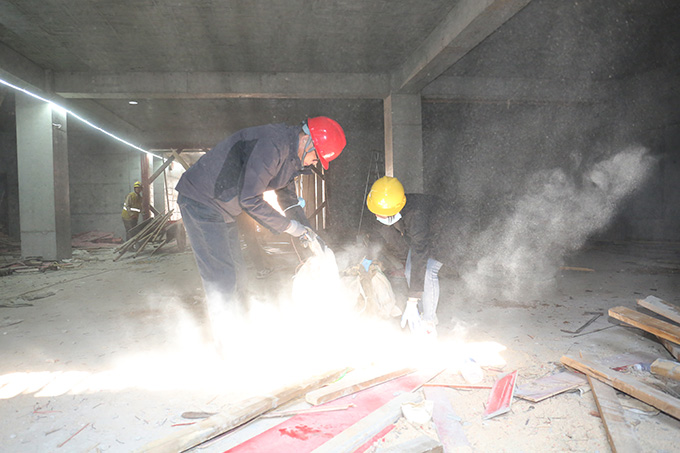 目前,我所新科研中心项目工程正在紧张建设中,施工阶段产生的一些可回收材料,如果合理处理能够大大减少资源浪费。党员们在做好安全防护措施后,来到地下一层,挽起衣袖,穿梭忙碌起来,大家认真地对模板材料、再利用钢扣件、脚手架钢管等可回收材料进行分类和归置,个个干得热火朝天,充分展现出了不怕脏、不怕苦、不怕累的服务精神。经过1个多小时的劳动,党员们流出的汗水换来了成效,杂乱的地面被清理一新,可回收材料被整齐分类摆放,为接下来的清运工作扫清了障碍、提供了便利,获得了建筑工人们的一致好评。