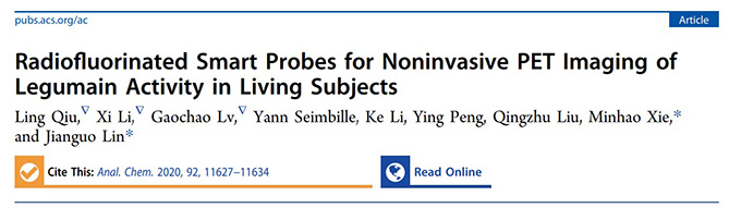 我所创新药物研究中心一项以天冬酰胺内肽酶为靶向的放射性氟标记探针研究工作取得新进展,用自主研制出的两种探针18F-2和18F-3对肿瘤中的天冬酰胺内肽酶活性进行正电子发射断层扫描成像(PET),证实其所具有的良好的特异性识别能力与检测信号增强功能。近日,这一成果发表在国际期刊一区杂志《Analytical Chemistry》2020年第92期上。