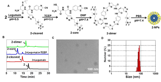 天冬酰胺内肽酶是一个溶酶体半胱氨酸蛋白酶,它的过度表达与肿瘤的增殖、侵袭和转移密切相关,因此,围绕天冬酰胺内肽酶进行疾病诊断与治疗药物的研发是当前学界的新颖视角之一,特别是利用PET对天冬酰胺内肽酶的活性进行分子成像的研究尚处于探索前沿领域。