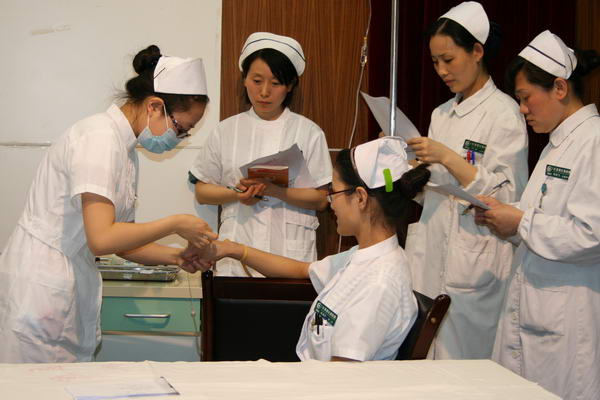 通过一年的年轻护士素质提高培训活动,加快了年轻护士们成长的步伐,无论理论知识和操作技能都得到了迅速提高。为进一步培养年轻人的心理素质,搭建展示自我平台,营造积极向上的氛围,以精湛的技能服务患者,护理部开展了“比技能、创一流”年轻护士技能竞赛活动。竞赛中由护士扮演患者,护士感同身受体验患者的感受,操作中充分体现与患者的沟通交流,爱患观念明显增强。