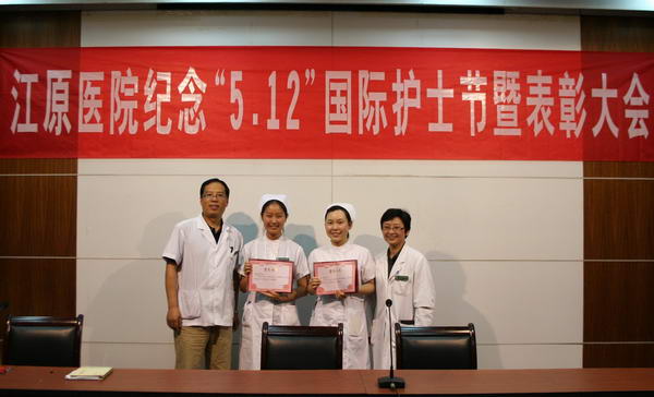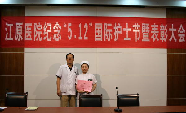 江原医院2011-2012年度“护理之星”为冯鹭(外科病区)和邵湘蓉(内科病区)。
