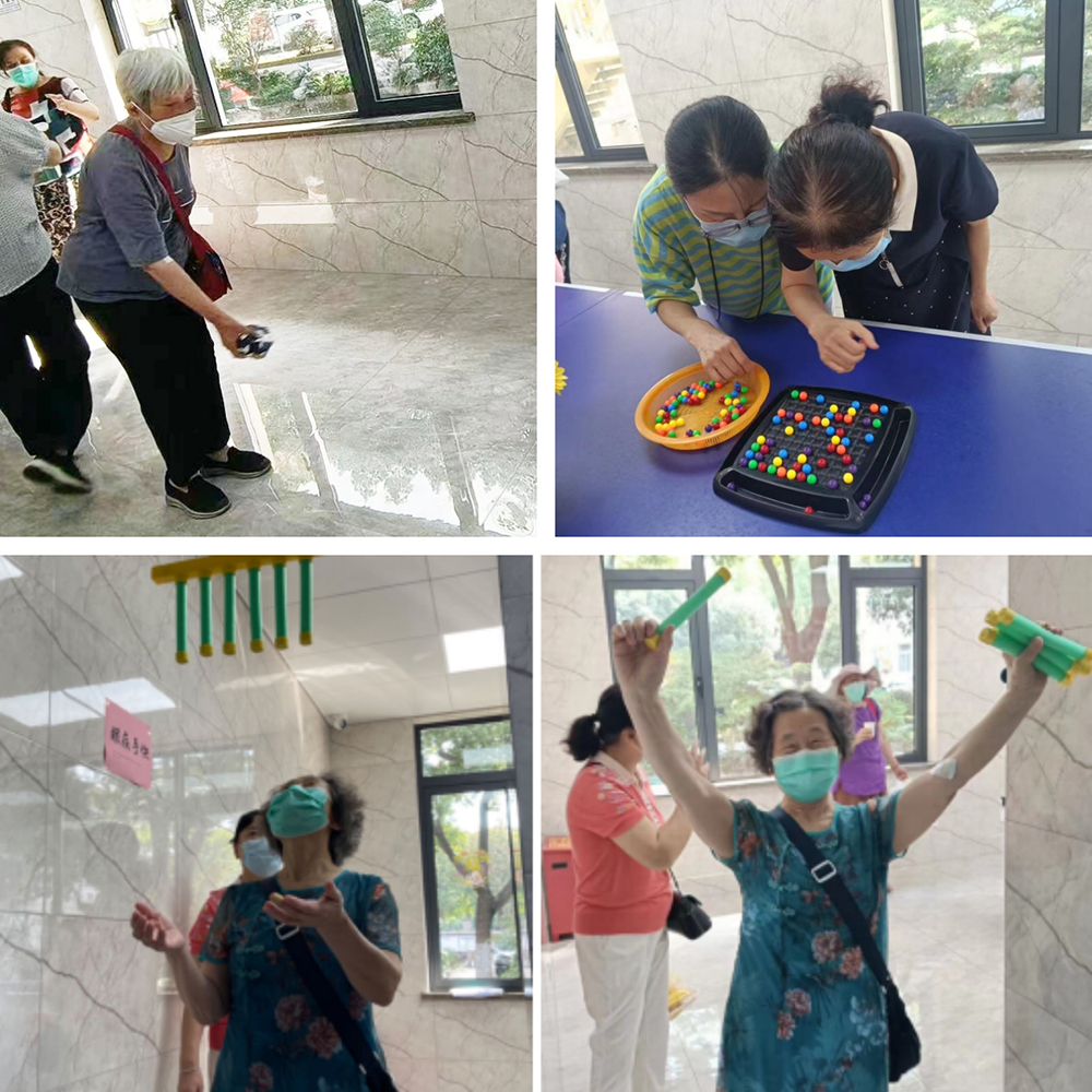 体检结束后,老同志们来到退休职工活动室,兴致勃勃地参与到趣味运动会当中。眼疾手快、开心消消乐、夹玻璃弹珠、沙包对对碰……这些充满趣味的游戏,让老同志开心地玩“嗨”起来!