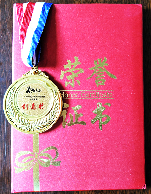 通过激烈角逐,邓维江获得了“2017美味大厨厨艺比赛冷菜专场创意奖”。(江原山庄 张芳芳)