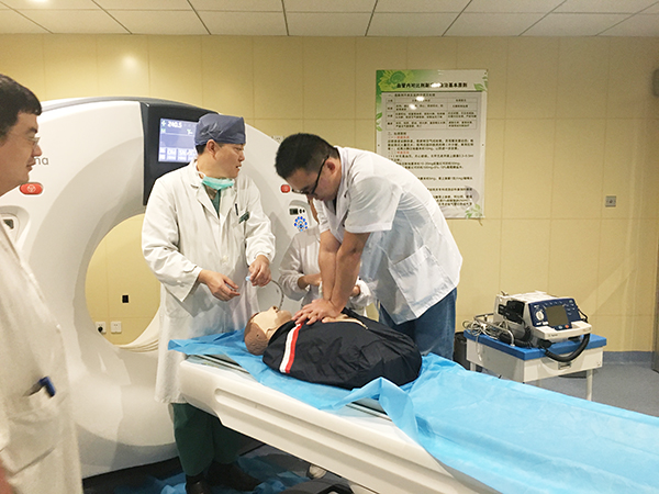 为了提高医护人员对于突发呼吸心跳骤停患者的组织及应变处理能力,检查医务人员对抢救流程、抢救设备使用、心肺复苏及除颤技能熟练掌握程度,9月13日下午,我所江原医院放射科开展了一次“增强CT患者突发呼吸心跳骤停抢救应急演练”,内科、麻醉科、放射科、急诊科等科室的医护人员通力合作、有条不紊,迅速地进行配合抢救、安全转运等工作,圆满完成了本次演练活动。